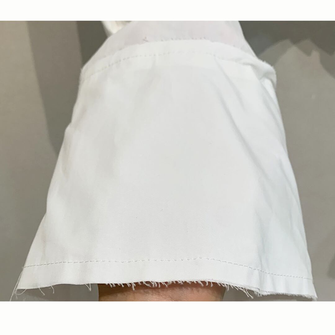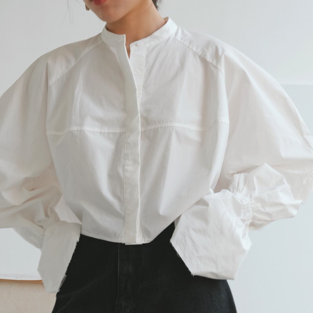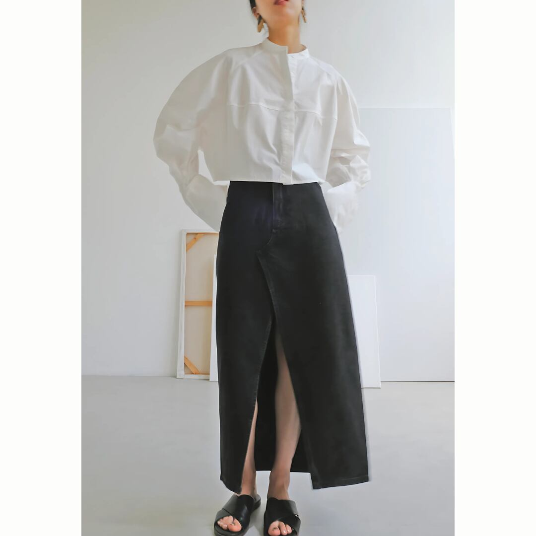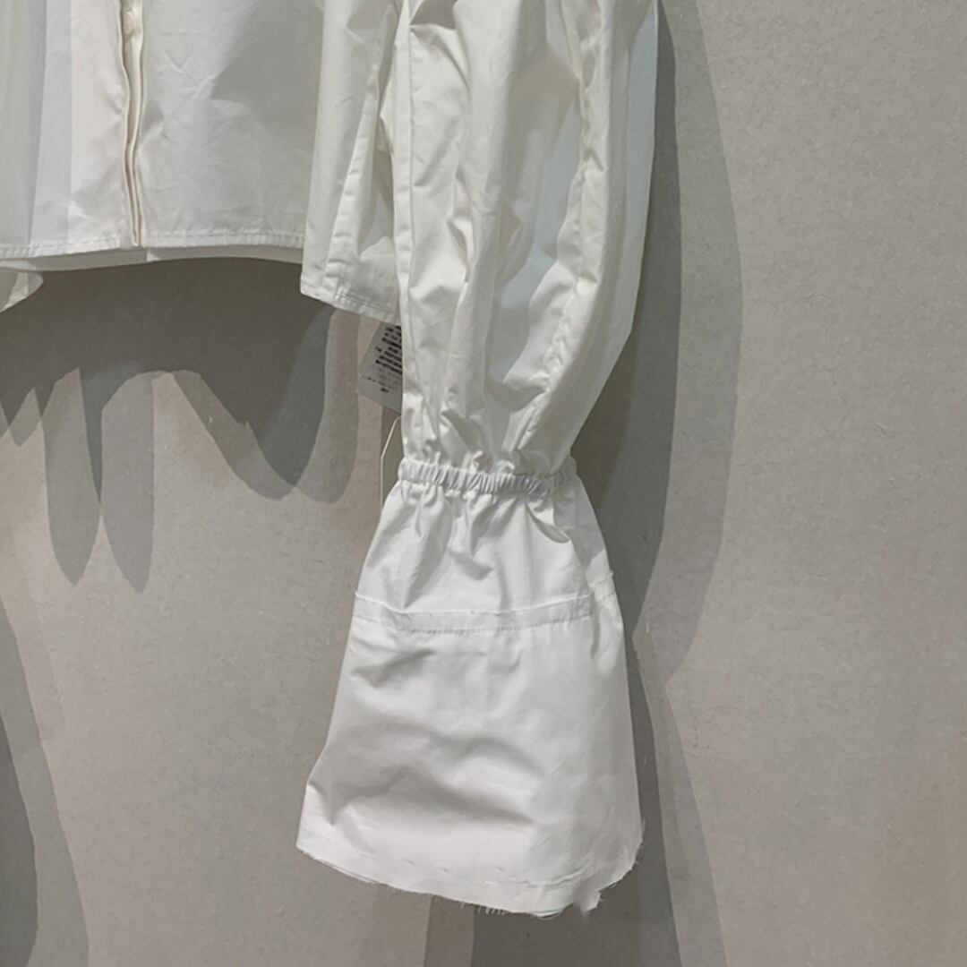 動きのあるシルエットが女性らしさを引き立て、スタイリングにこなれた印象をプラスします。袖口は切りっぱなしのディテールを施し、ナチュラルでラフな雰囲気を演出。