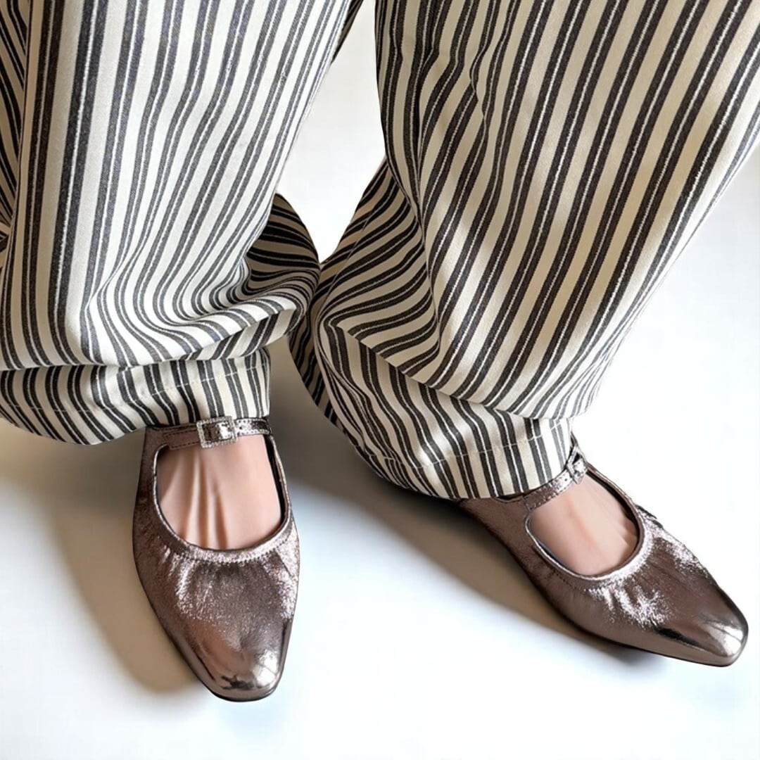シープスキンならではの軽さとフィット感に加え、上品な光沢感が足元を美しく引き立てます。歩きやすさを考慮した1.5cmヒールに加え、つま先が自然にUPした設計で、スムーズな歩行をサポート。長時間の着用でも快適に過ごせます。