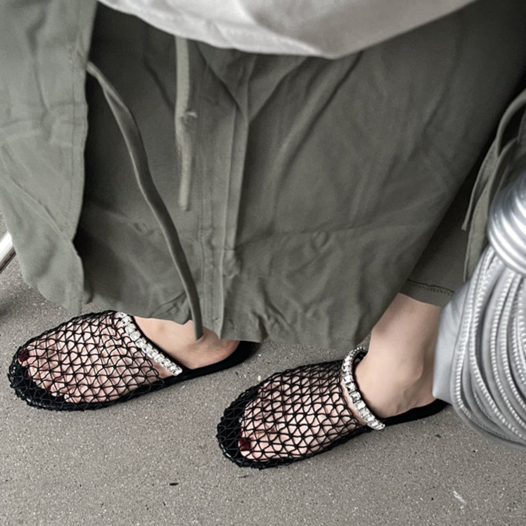 エレガントさと軽やかさを兼ね備えた大人のための一足。涼しげなメッシュ素材が足元を美しく見せ、春夏のコーディネートをより洗練された印象に仕上げます。