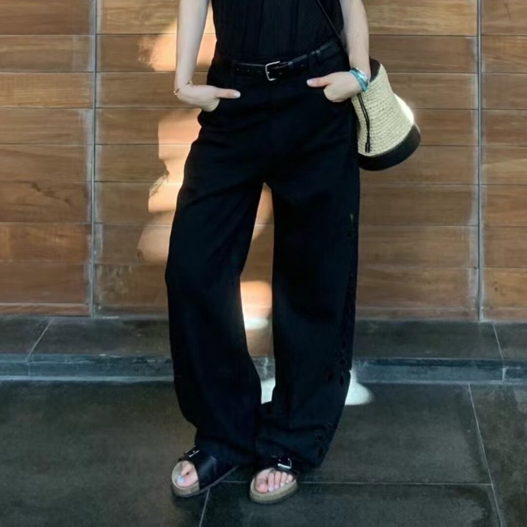 デイリールックはもちろん、オフィススタイルにもマッチする万能アイテム。シンプルなトップスと合わせることで、花々が映えるコーディネートが完成します。リラックスした雰囲気を持ちながらも、上品さを失わないパンツです。