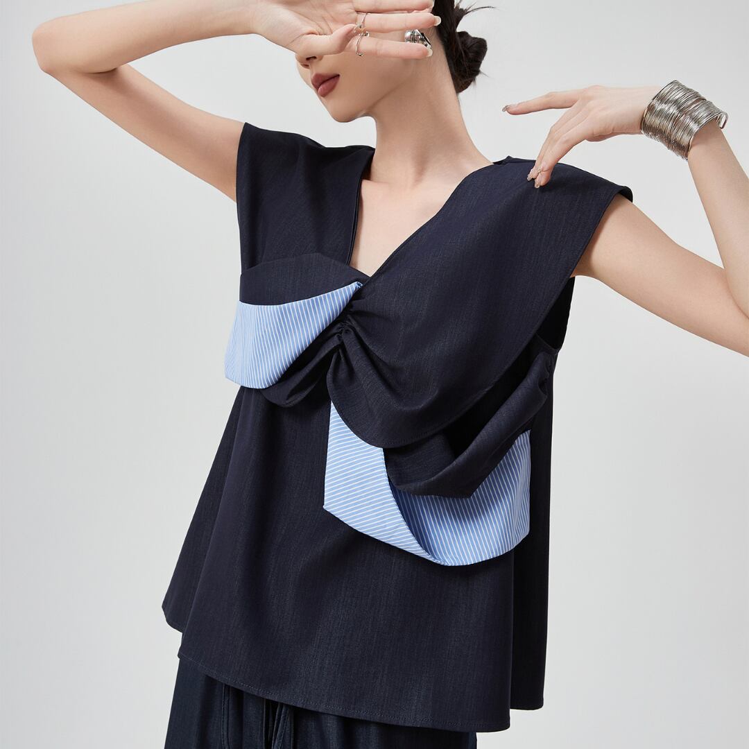 Bicolor V-neck blouse