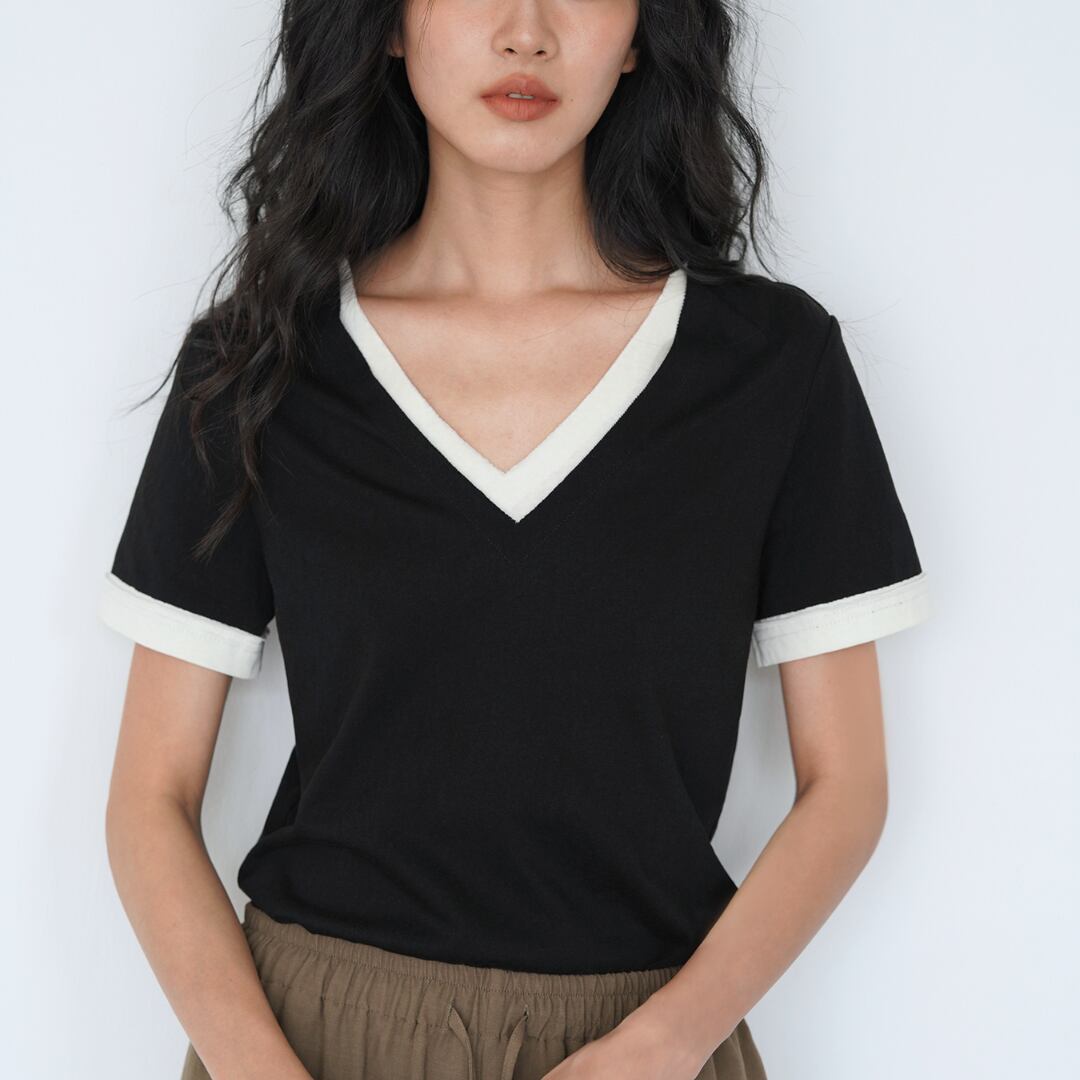 V-neck two-tone T-shirt