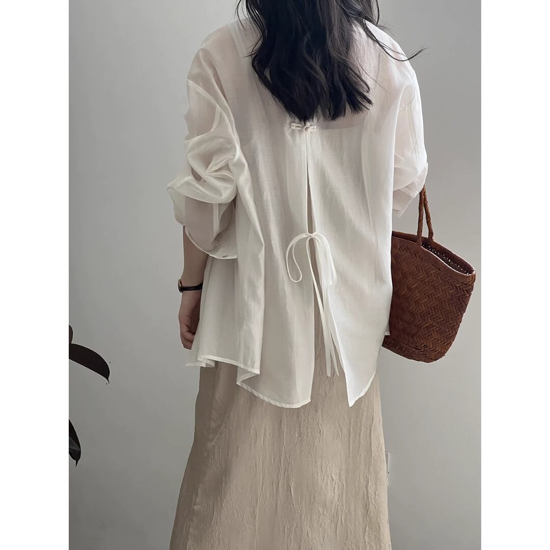 背中のスリットがスタイリッシュな印象を演出するシアーシャツのご紹介です。