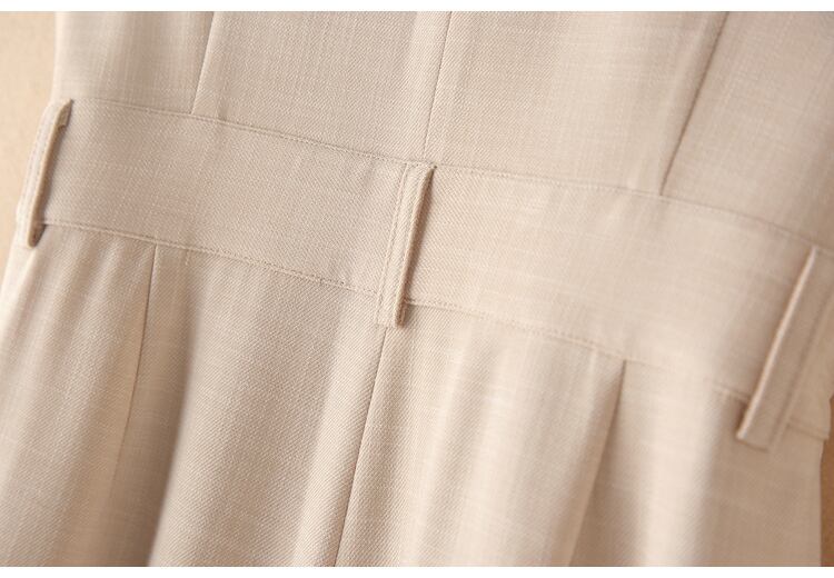 Vネックのベストスタイルデザインが大人の女性らしい知的な印象を演出。ハイウエストで足長効果もあり、ドレープ性のゆったりとしたワイドレッグパンツが、体形カバーにも役立ちます。肌見せが気になる方は、インナーにシアーシャツを着ても相性がよいです◎