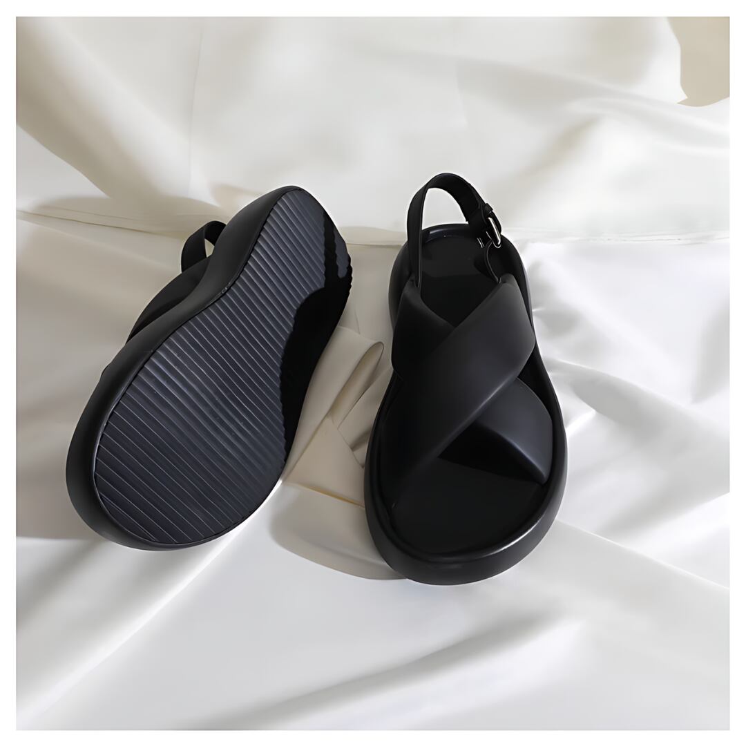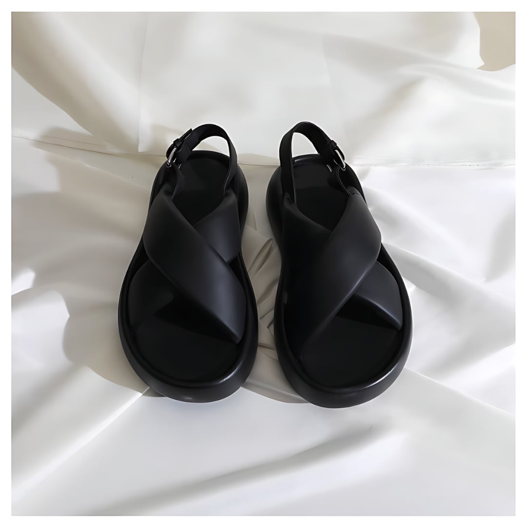 <2colors>Leather cross strap sandals
