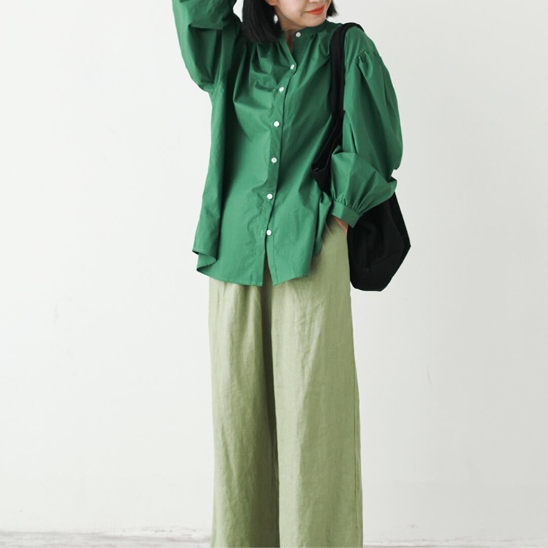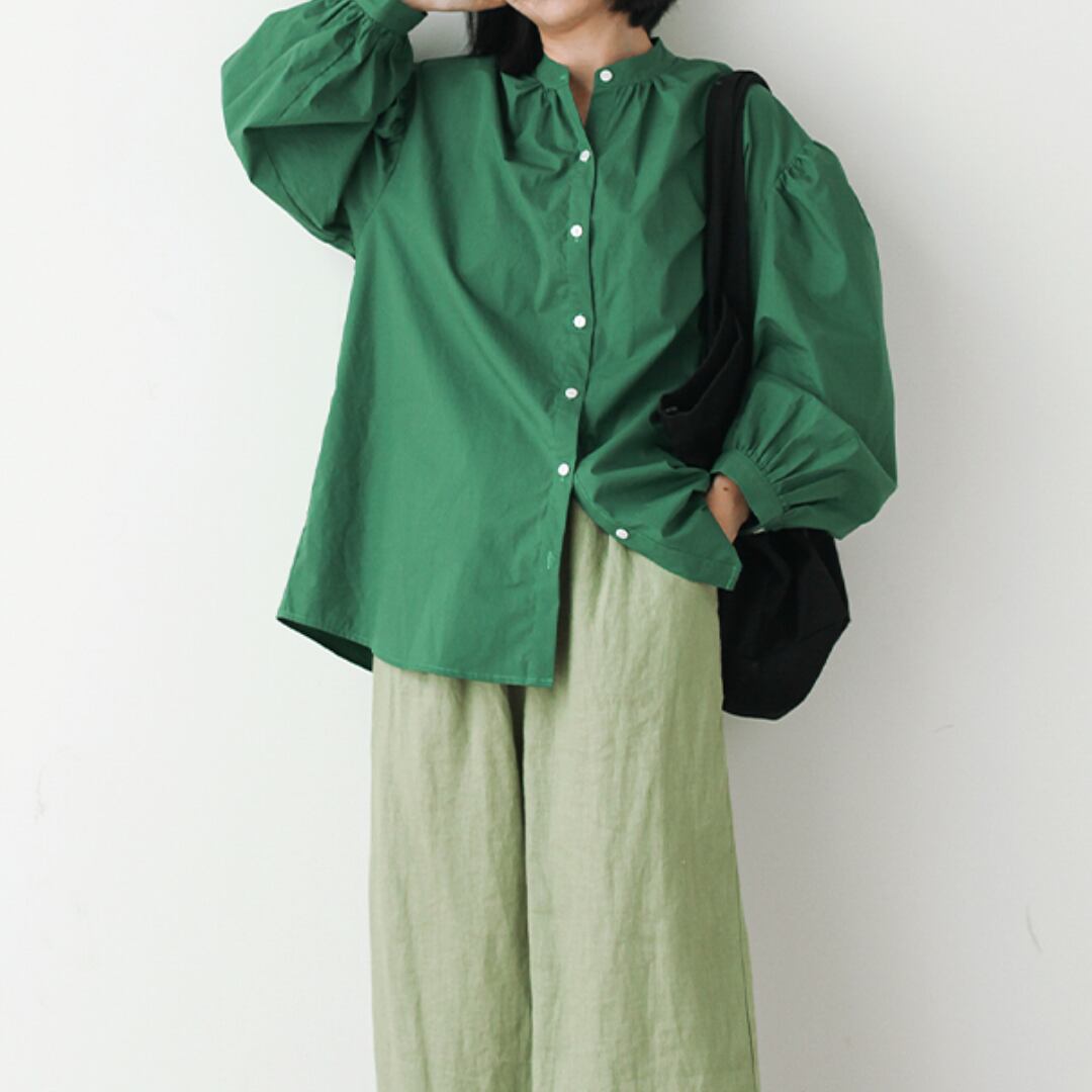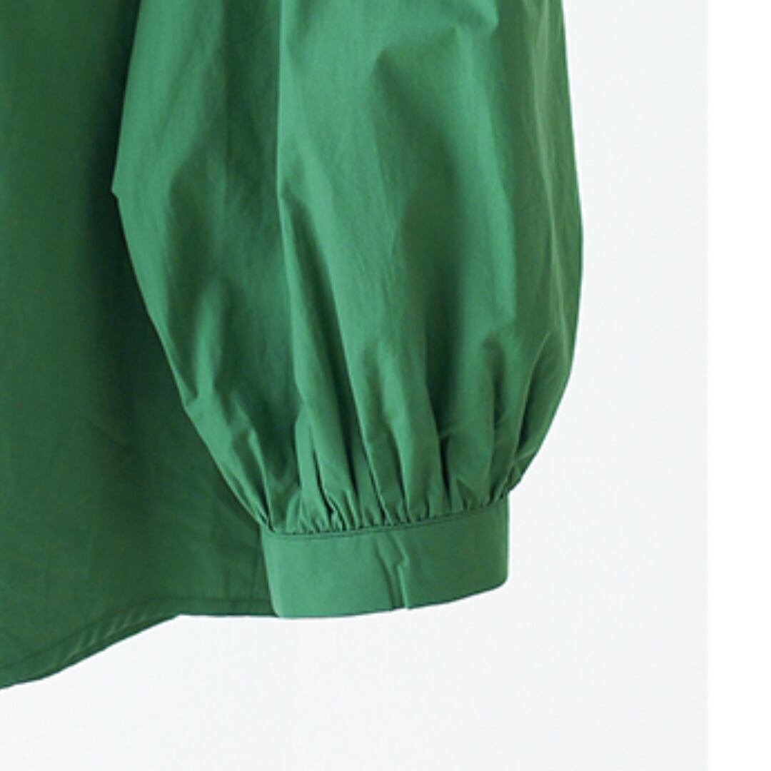 程よいハリのある生地が、きちんと感を演出しながらも、柔らかく馴染む着心地の良さを実現します。小さめの襟が上品で洗練された印象を与え、ふんわりとしたパフスリーブが程よい女性らしさをプラス。