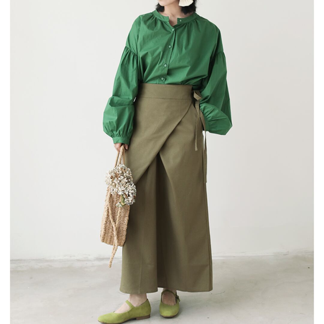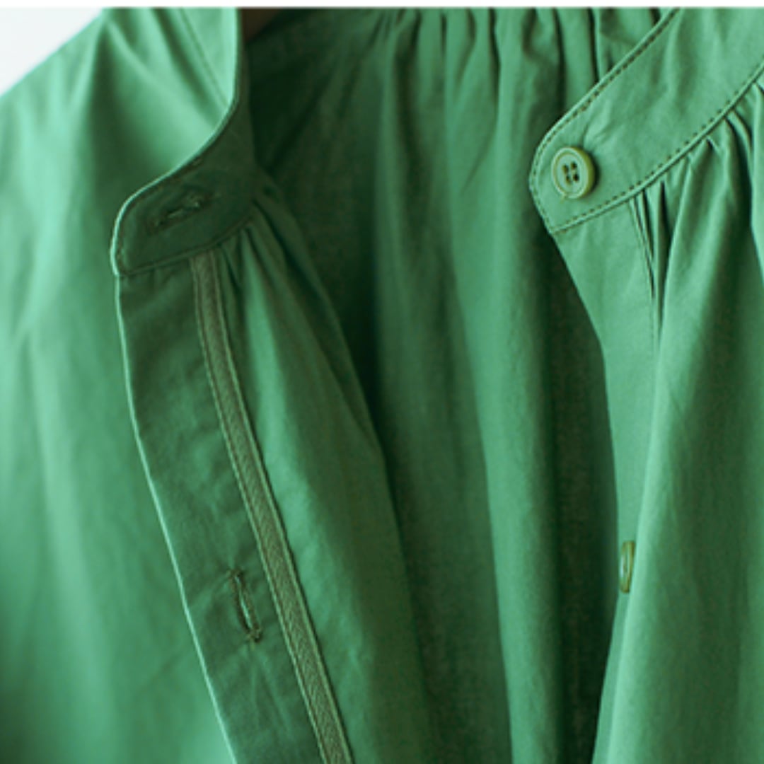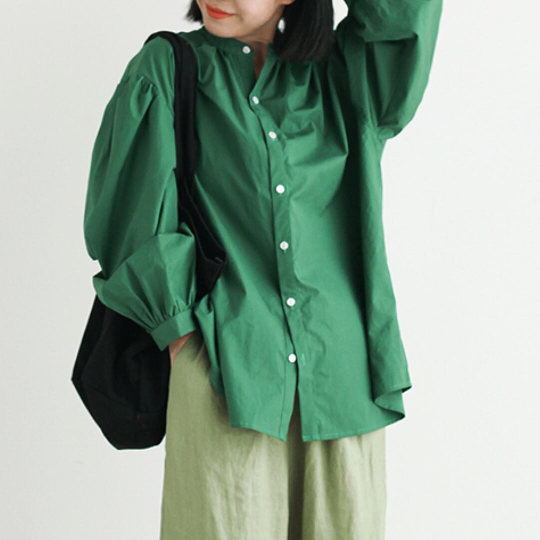 程よいハリのある生地が、きちんと感を演出しながらも、柔らかく馴染む着心地の良さを実現します。小さめの襟が上品で洗練された印象を与え、ふんわりとしたパフスリーブが程よい女性らしさをプラス。